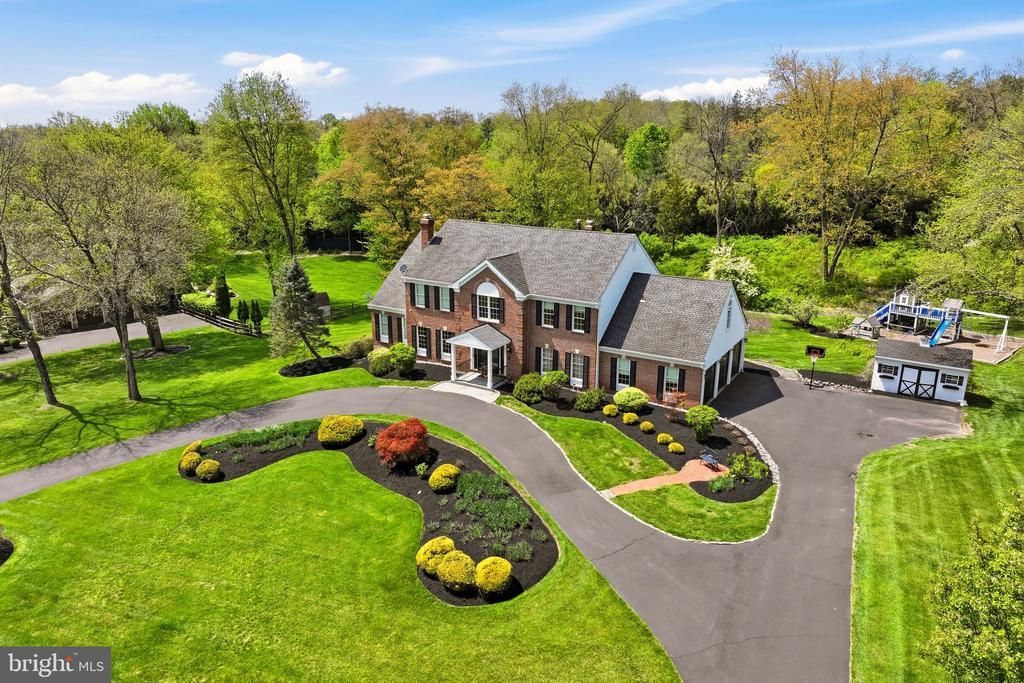 Welcome to 1211 Turnbury Lane, a stately brick colonial tucked away on a beautifully landscaped 1.37-acre lot in the highly sought-after Gwynedd Knoll community in Lower Gwynedd Township. Offering over 6,300 square feet of refined living space, this meticulously maintained home seamlessly blends classic elegance with modern functionality. A long, horseshoe driveway and manicured grounds create a grand first impression, leading to a striking two-story foyer with a dramatic bifurcated staircase, custom millwork, and abundant natural light throughout. The main level is thoughtfully designed for both everyday living and entertaining, featuring a formal living room with a wood-burning fireplace, an elegant dining room with detailed moldings, and a private office with coffered ceilings and built-ins. At the heart of the home is the chef’s kitchen, complete with an oversized island, custom cabinetry, exotic granite countertops, and premium appliances including a 5-burner induction cooktop and double wall ovens. The kitchen flows seamlessly into the breakfast area and expansive family room with a brick fireplace, all overlooking the serene backyard. A standout feature of the first floor is the private in-law suite, which includes a full bath with double vanity and a walk-in closet—ideal for guests, extended family, or flexible living needs. Near the 3-car garage (equipped with an upgraded outlet for car charging) is a large mudroom with a utility sink, washer/dryer, and built-ins for added storage. Upstairs, the luxurious primary suite is a true retreat, featuring dual walk-in closets, a steam shower with dual heads, and a dedicated washer/dryer for ultimate convenience. This suite also offers direct access to a private deck and a workout/bonus space with wall-to-wall mirrors. Four additional generously sized bedrooms include a princess suite with its own bath, while the remaining bedrooms share an updated hall bath with double vanity. The lifestyle continues in the fully finished lower level, which offers incredible versatility with dedicated areas for a playroom, media space, and recreation. Outside, the 1,200 sq ft elevated composite deck spans the entire rear of the home and is designed for grand-scale entertaining, featuring modern glass railings and a built-in grilling station with granite counters. The expansive backyard offers a private, park-like setting with a custom-built King Swings playground. Additional highlights include: hardwood floors, custom moldings, volume ceilings, recessed lighting, a 3-zone HVAC, and a detached shed with electricity. The home is located within the award-winning Wissahickon School District.